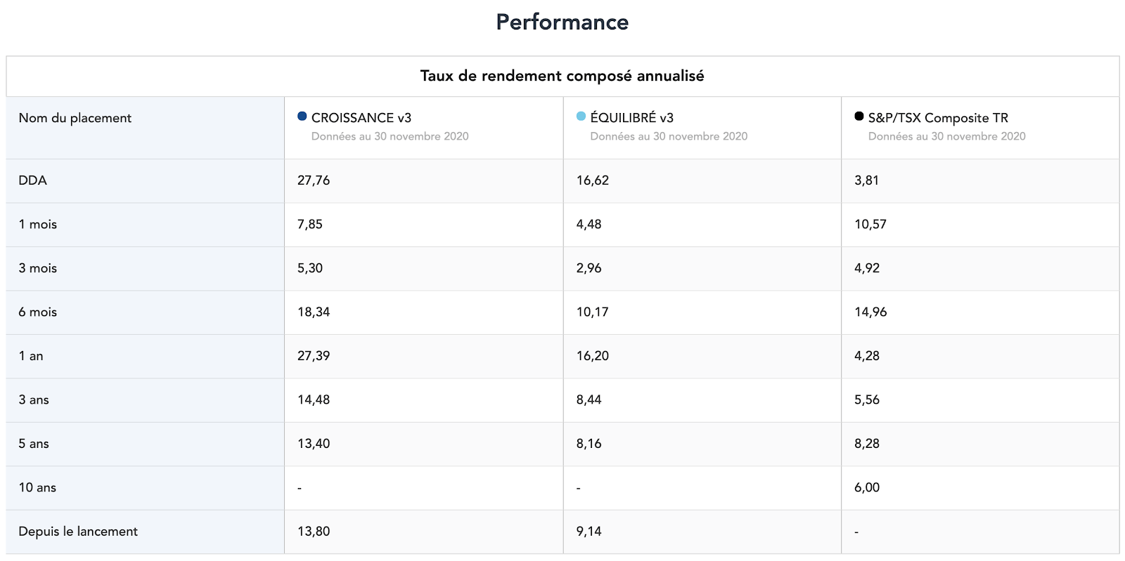 Voici un petit comparatif des performances de nos portefeuilles CROISSANCE et ÉQUILIBRÉ avec l’indice canadien S&P TSX pour 2020.